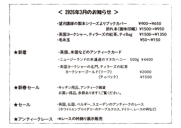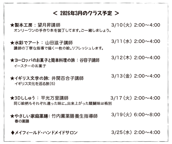 ★講座開催日とハンドメイドサロンの日のみ2:00〜4:00物販しております。