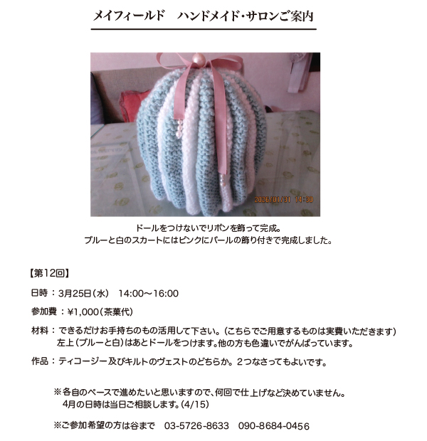 短い時間ですがお越しお待ちしております。(ハンドメイドサロン 3/25,4/15)