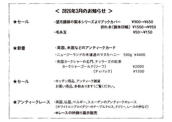 ★講座開催日とハンドメイドサロンの日のみ2:00〜4:00物販しております。